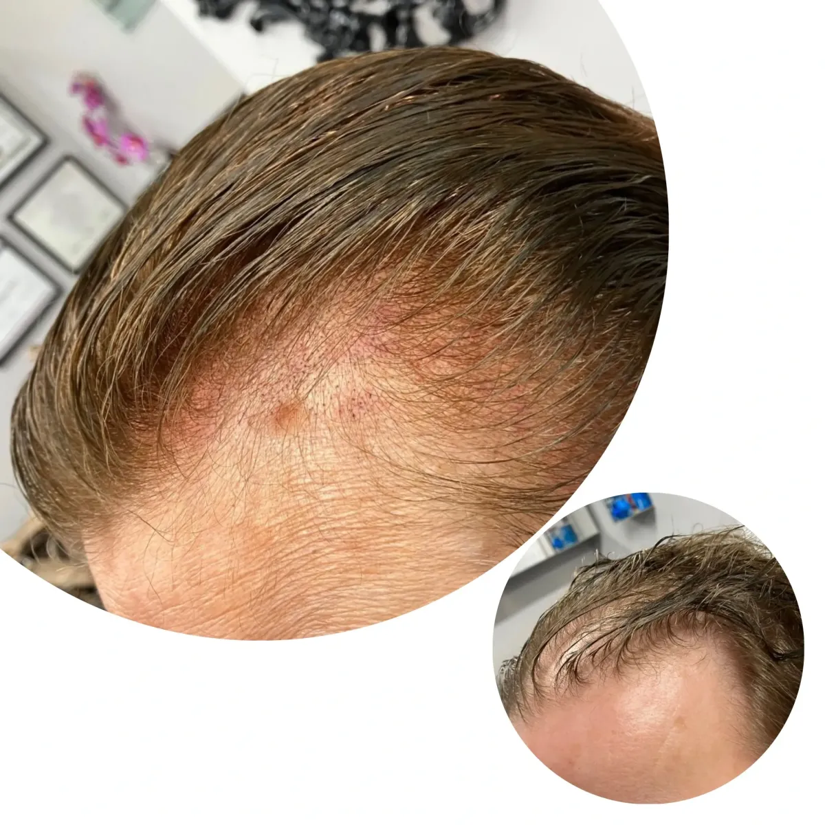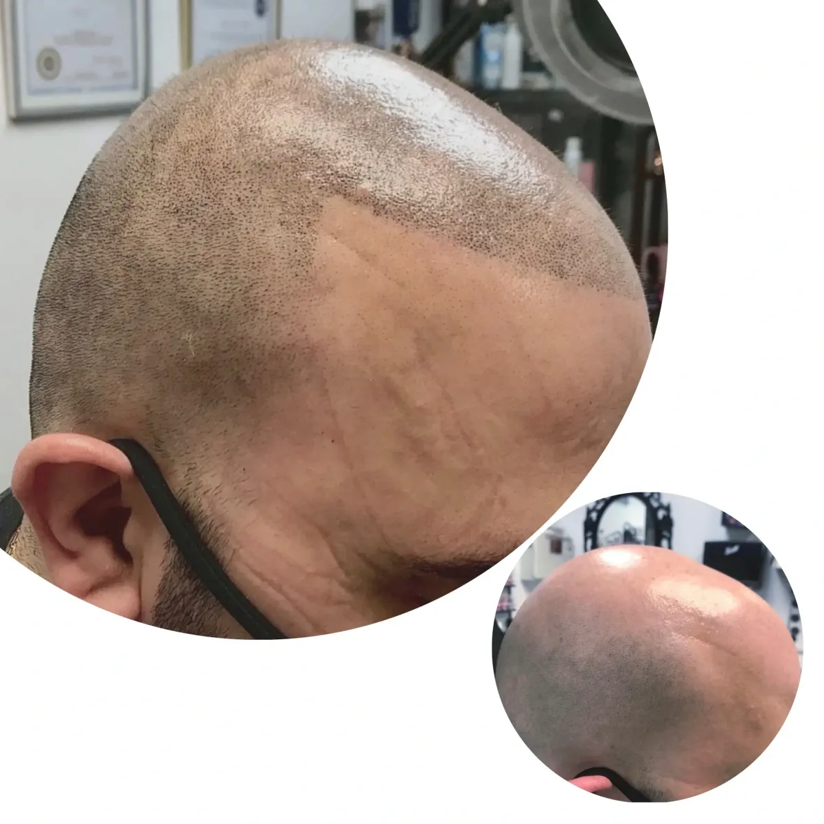 SMP is non-invasive and requires no down time. In most cases, you will not need to take any extended time away from work, school, or other functions. After treatment it is common to notice slight redness on the scalp for 2-3 days post session. This redness subsides quickly and most clients return to work either right away or within a couple days. Clients are also allowed to wear hats or headwear should they feel the need.